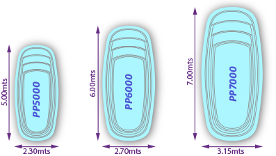 Cada piscina se concibe como única por el Departamento de Diseño, que trabaja con tendencias arquitectónicas mundiales. Sus modelos son estudiados para optimizar el espacio interior, funcionalidad, armonía estética, metodología productiva y traslado. Poseen también el sello de calidad IPC, y son equipadas con accesorios únicos, modernos e innovadores para un mejor confort y disfrute.